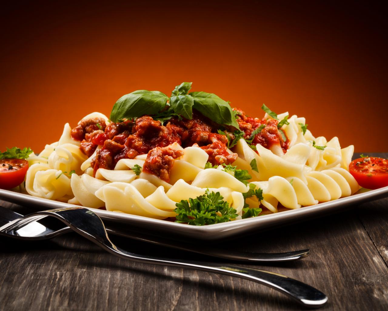 Wallpaper Appetizing pasta with sauce and basil