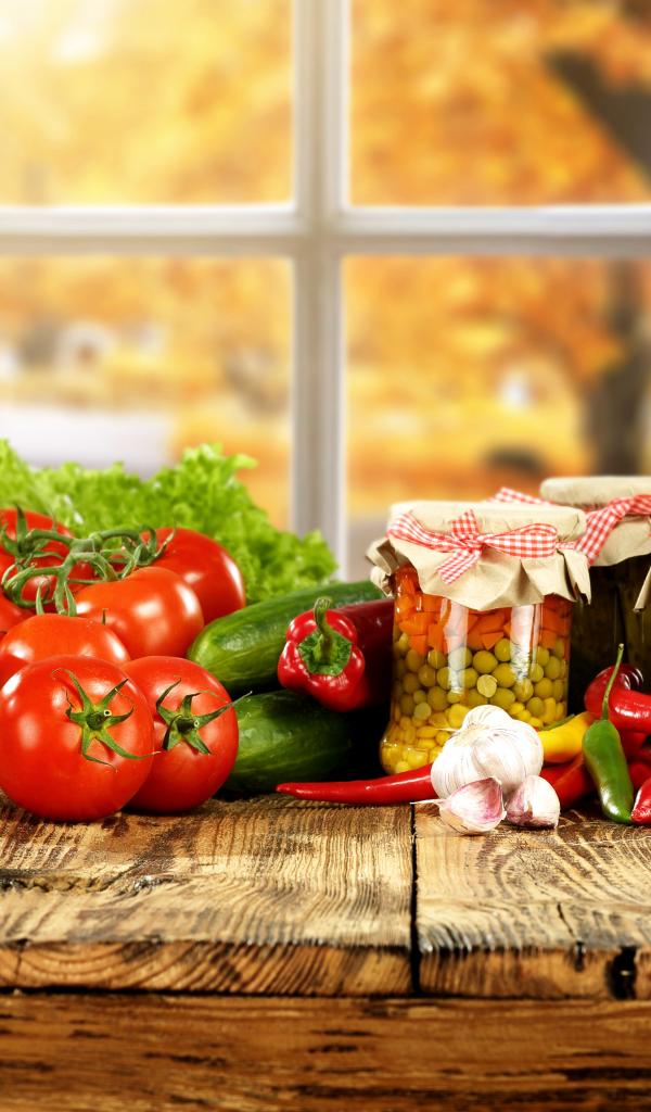 Wallpaper Fresh vegetables and winter blanks on the table