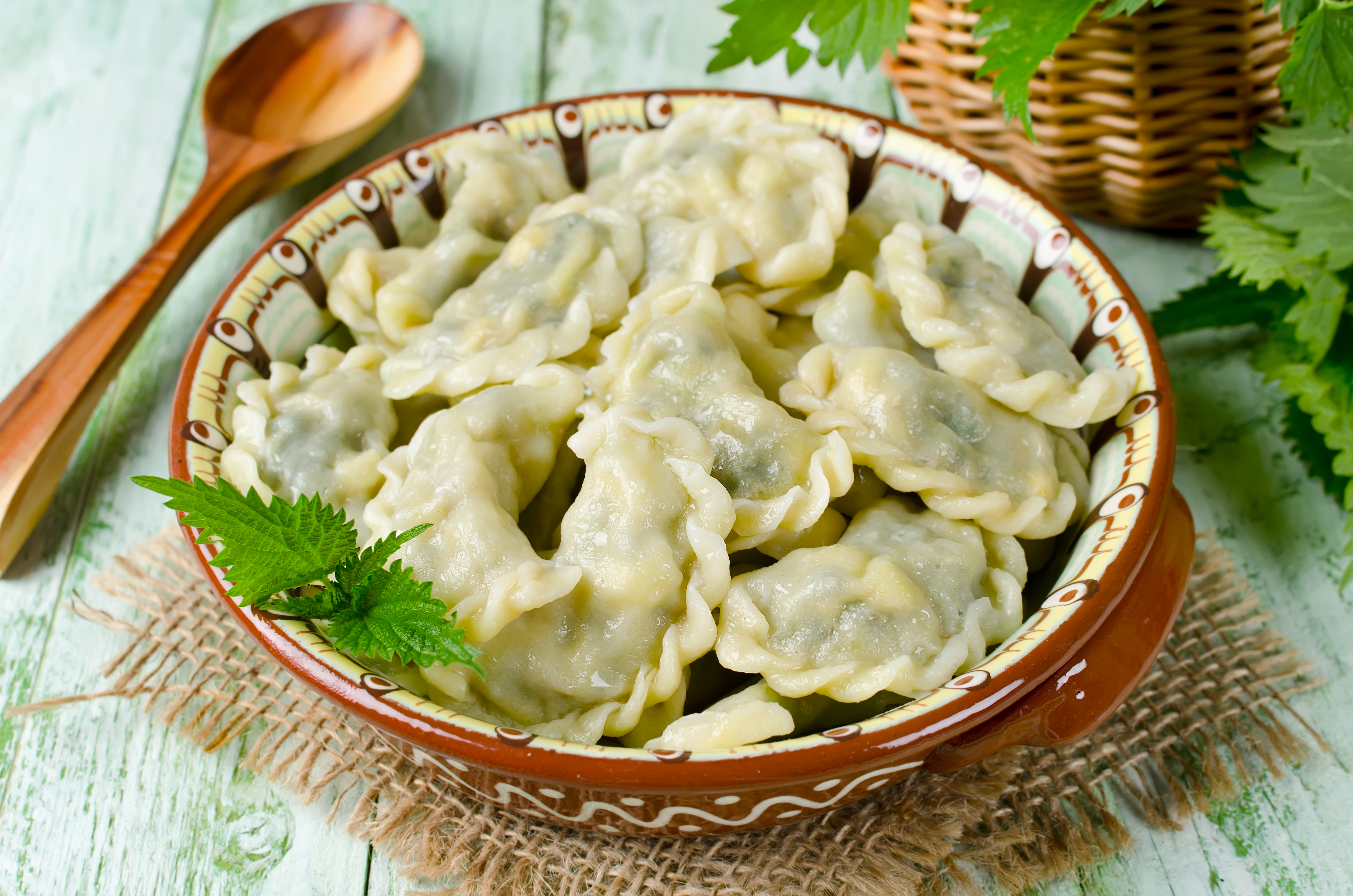 Wallpaper Appetizing dumplings on a plate with a spoon