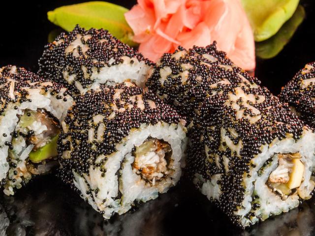 Wallpaper Appetizing rolls with black caviar