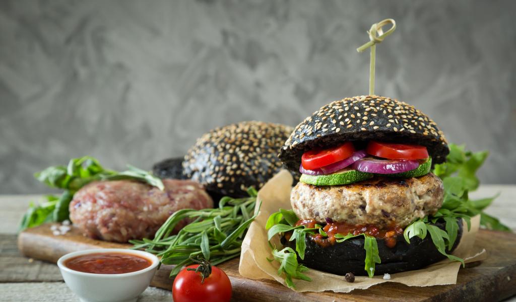 Wallpaper Hamburger with chop and vegetables