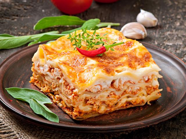 Wallpaper Fresh lasagna with red pepper on a plate