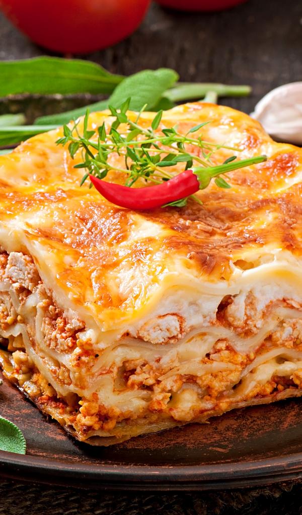 Wallpaper Fresh lasagna with red pepper on a plate