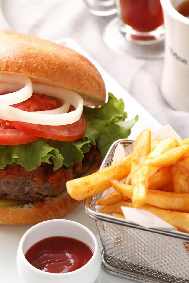 Wallpaper Hamburger with French fries and sauce
