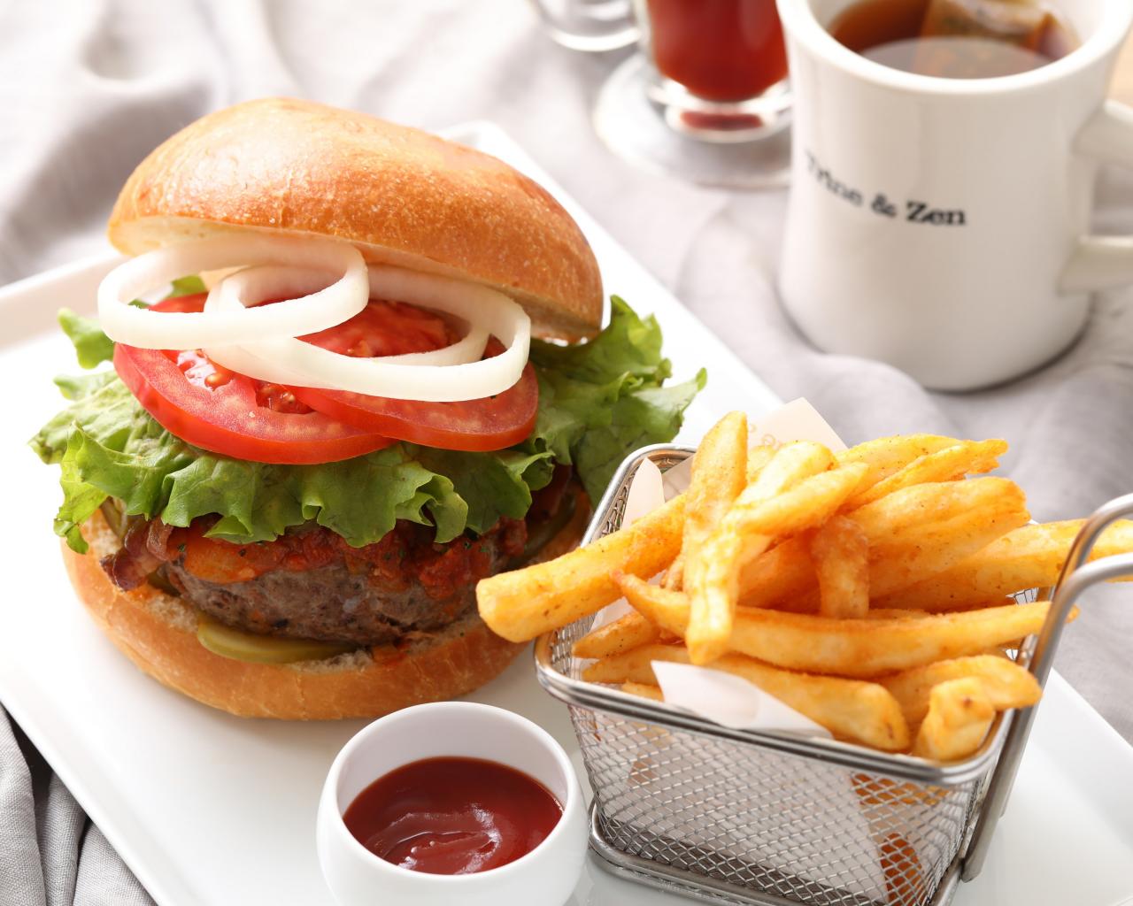 Wallpaper Hamburger with French fries and sauce