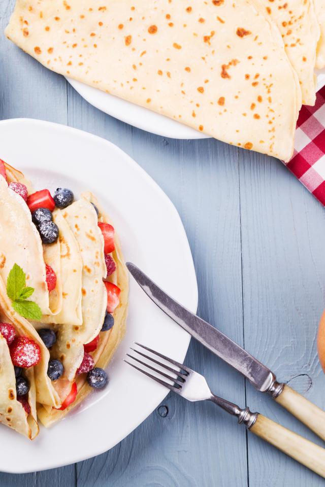Wallpaper Appetizing pancakes with berries on a white plate