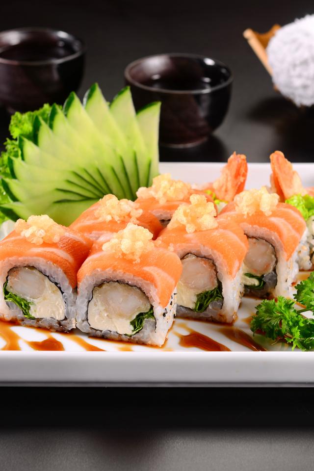 Wallpaper Appetizing Japanese sushi with red fish