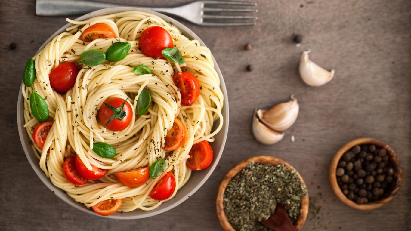 Wallpaper Spaghetti with fresh tomatoes and spices