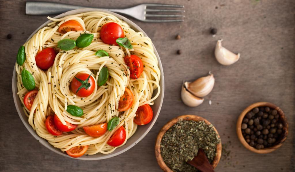 Wallpaper Spaghetti with fresh tomatoes and spices