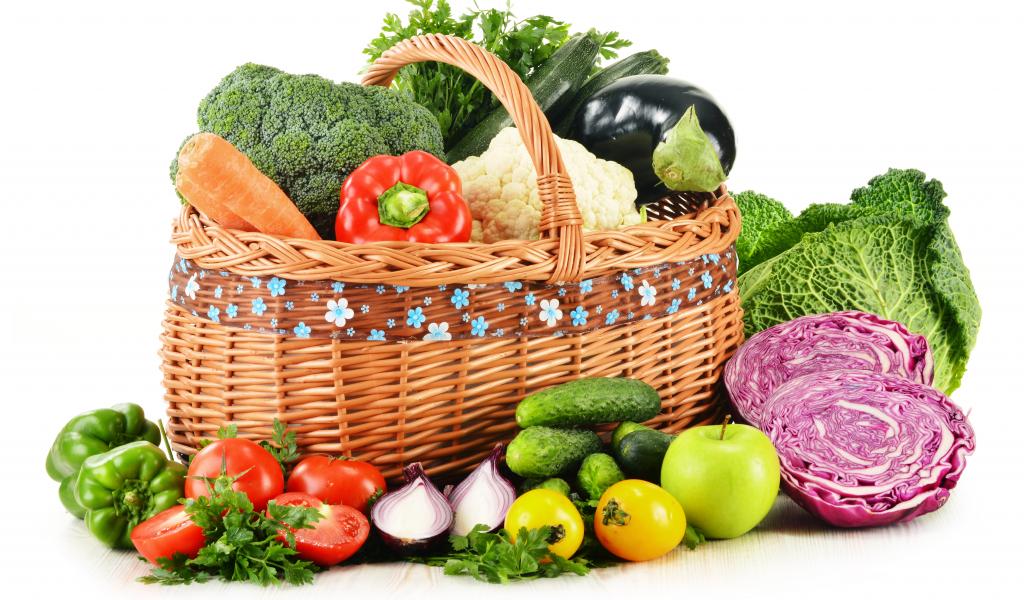 Wallpaper Large basket of vegetables on a white background