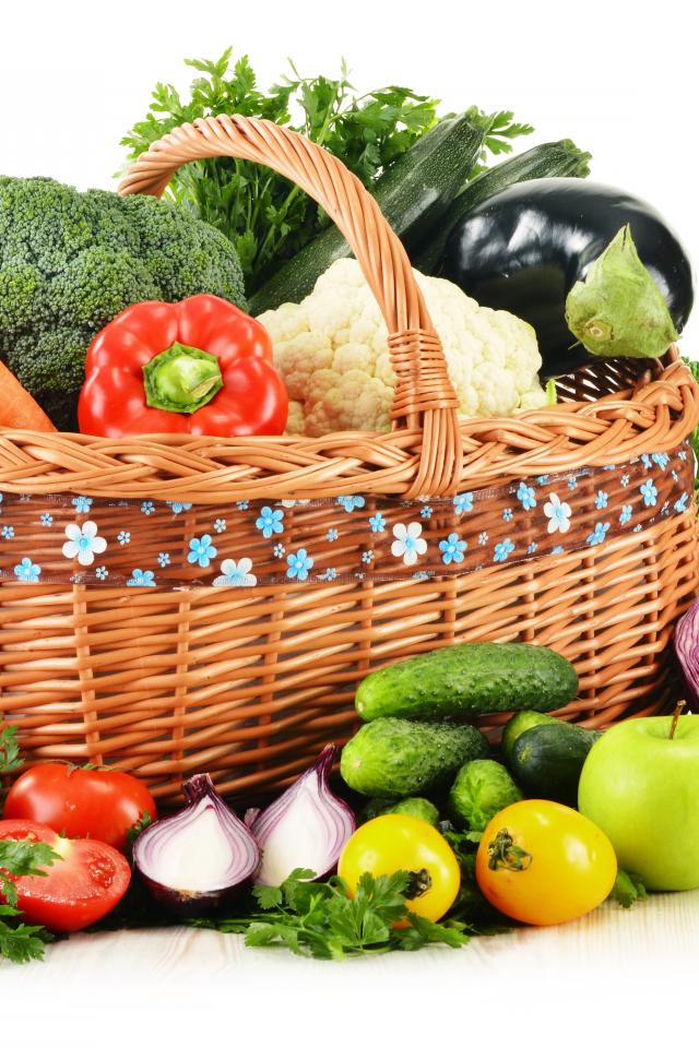 Wallpaper Large basket of vegetables on a white background