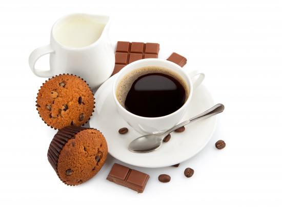 Wallpaper Coffee with milk, chocolate and muffins for breakfast