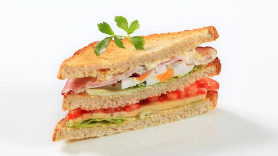 Wallpaper Appetizing sandwich with vegetables on a white background