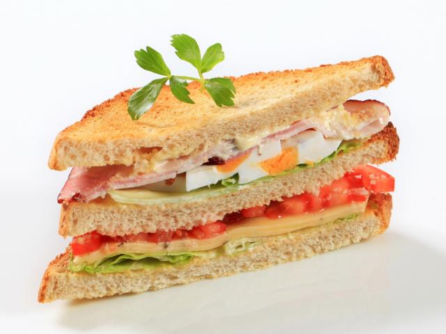 Wallpaper Appetizing sandwich with vegetables on a white background
