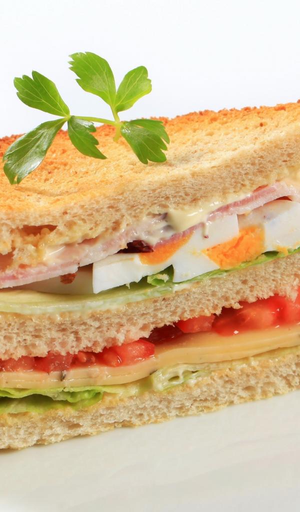 Wallpaper Appetizing sandwich with vegetables on a white background