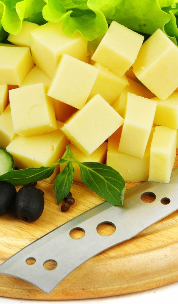 Wallpaper Cheese diced on a chopping board