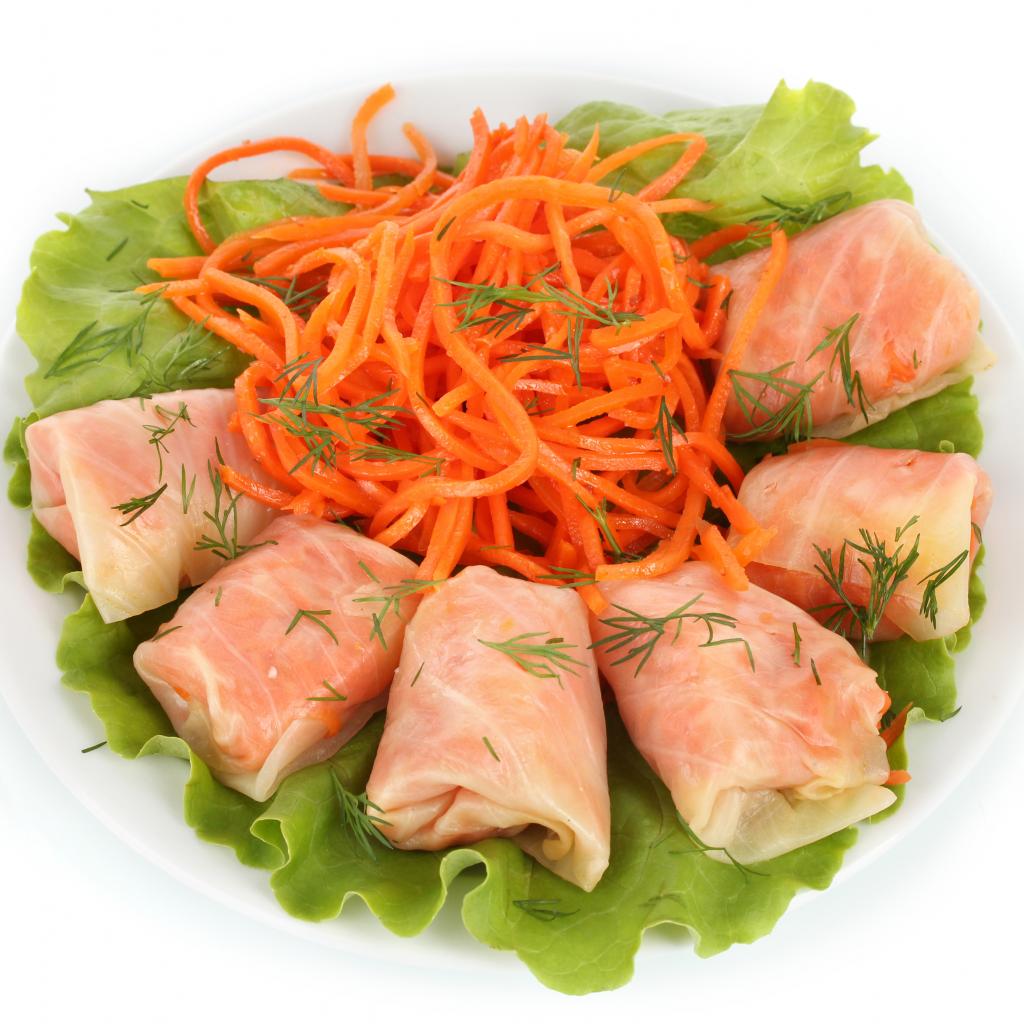 » Wallpaper Cabbage rolls with Korean carrots on a white background