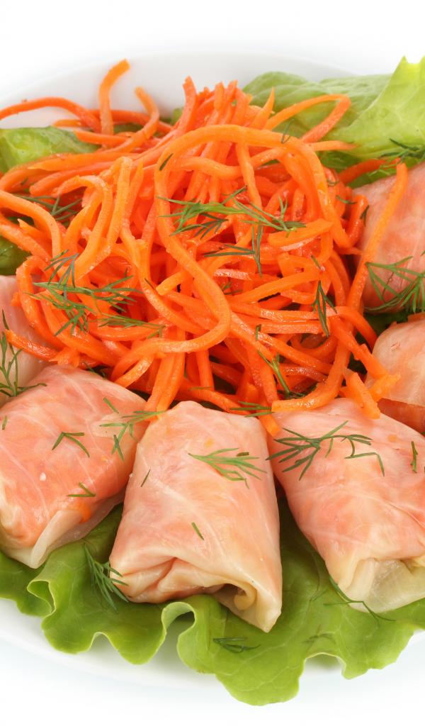 Wallpaper Cabbage rolls with Korean carrots on a white background