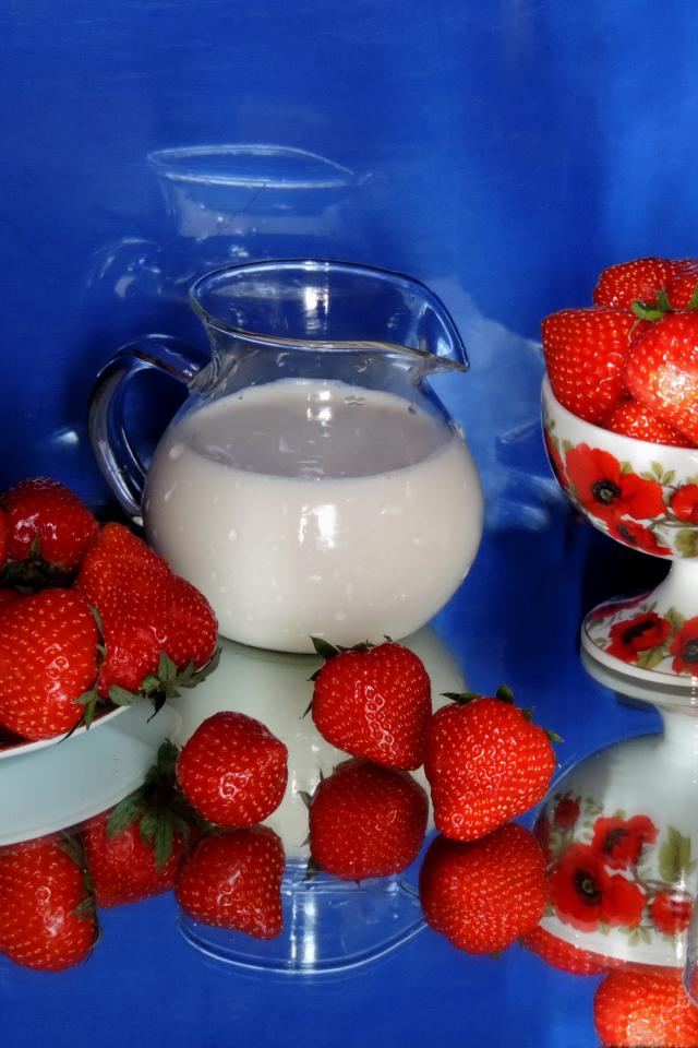 Wallpaper Fresh appetizing strawberries on a table with milk