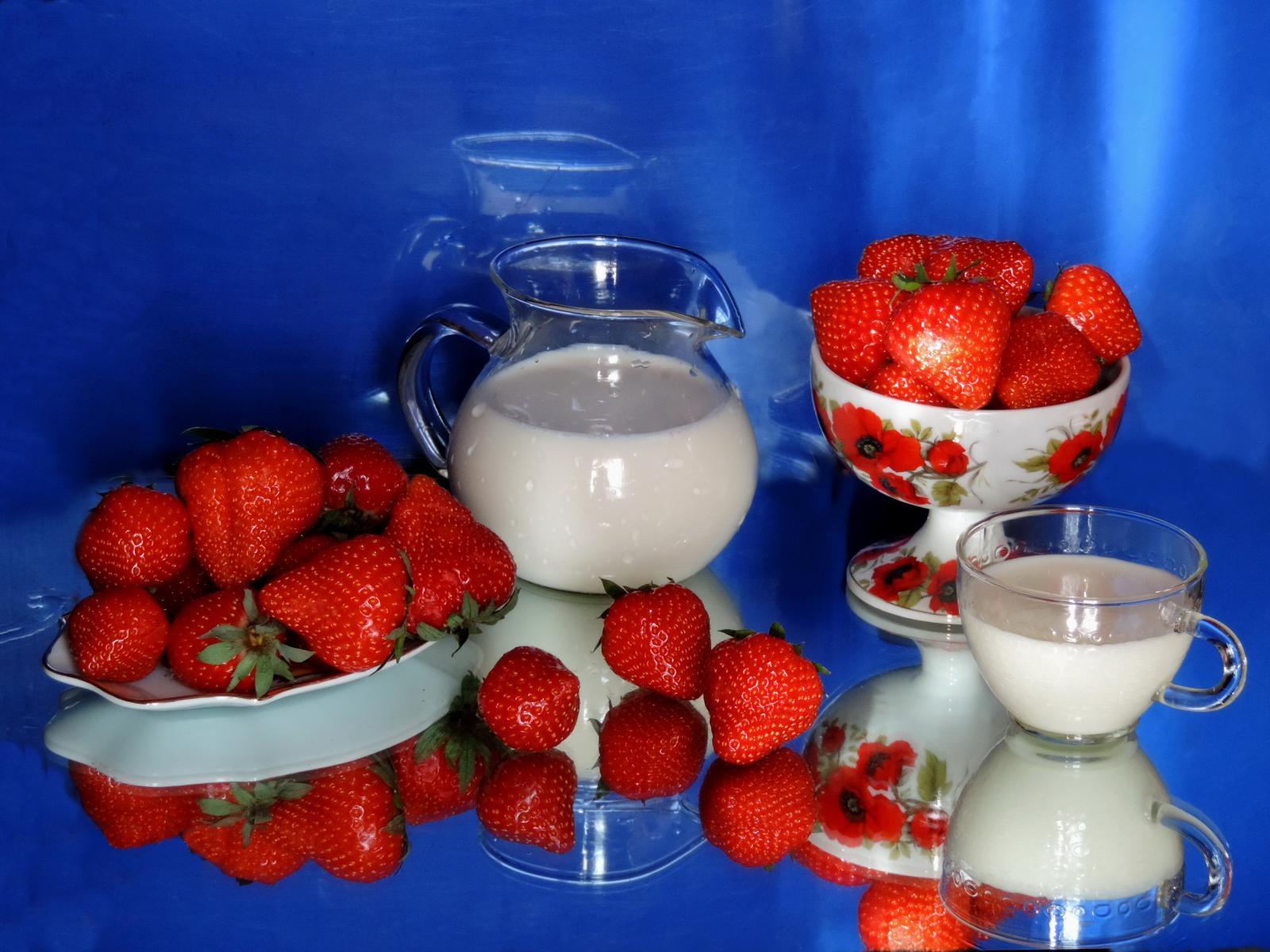 Wallpaper Fresh appetizing strawberries on a table with milk