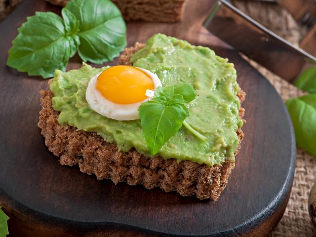 Wallpaper Heart of bread with green sauce and a fried egg