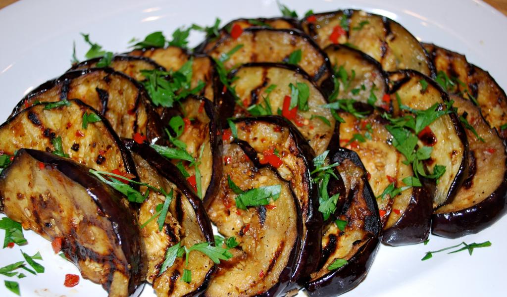 Wallpaper Appetizing fried eggplant on a plate with greens