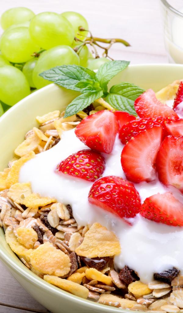 Wallpaper Thoughts for breakfast with strawberries, grapes and cream