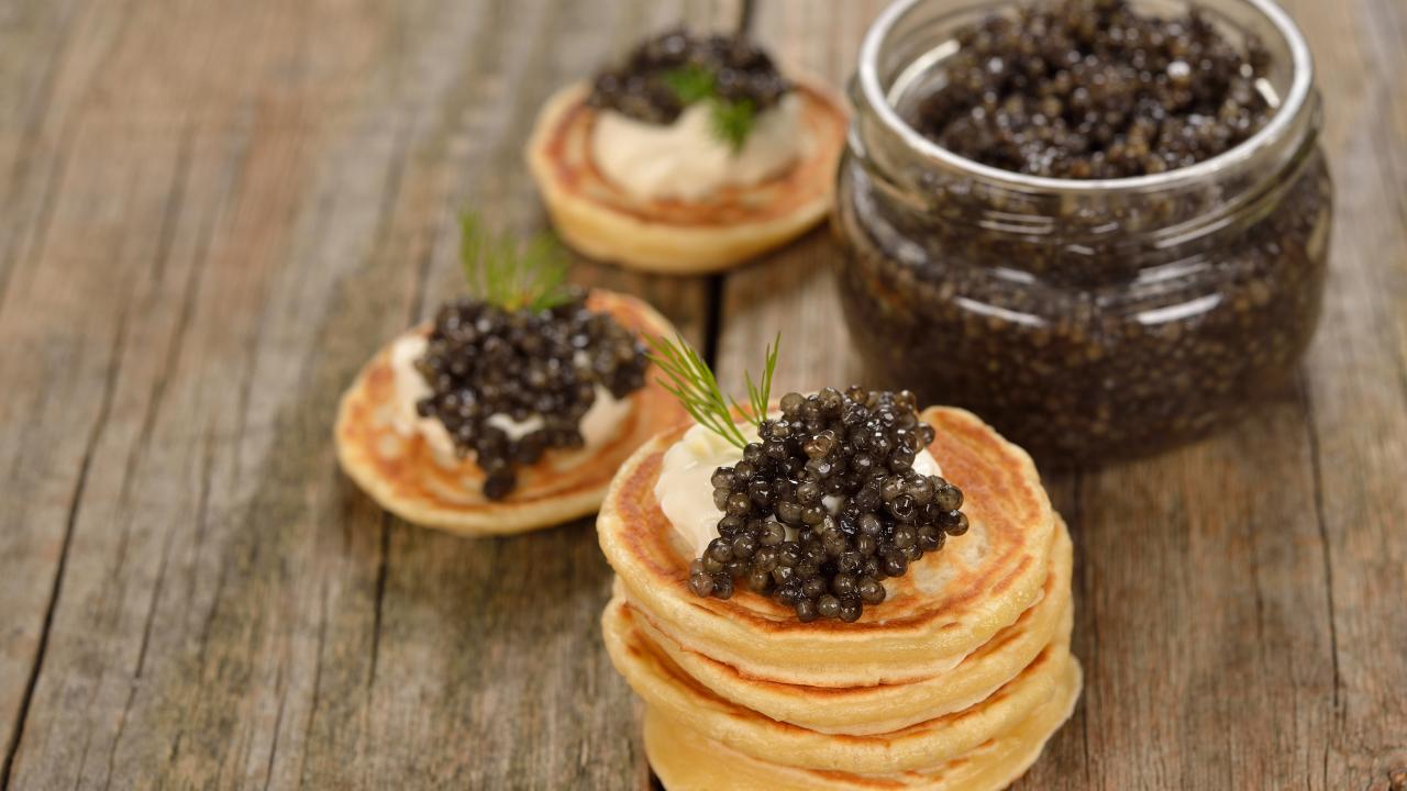 Wallpaper Pancakes with caviar and greens on the table