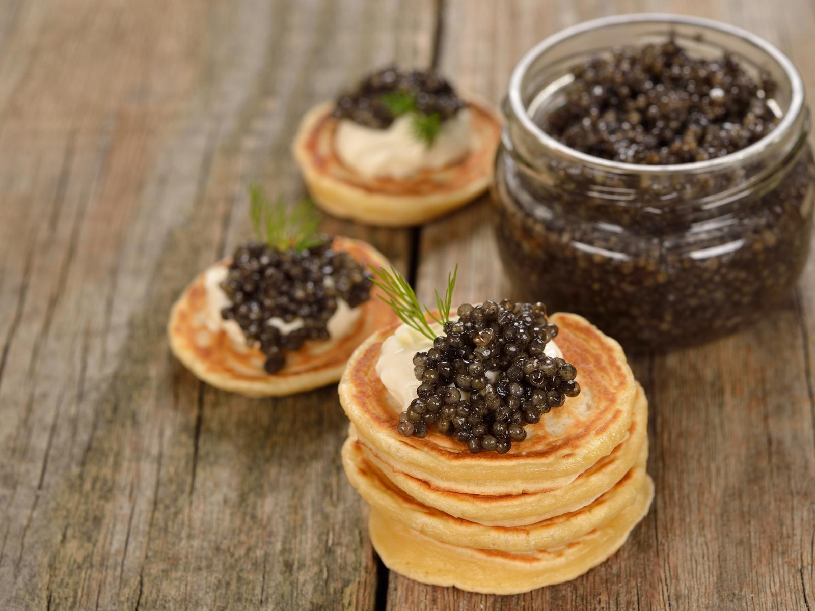 Wallpaper Pancakes with caviar and greens on the table