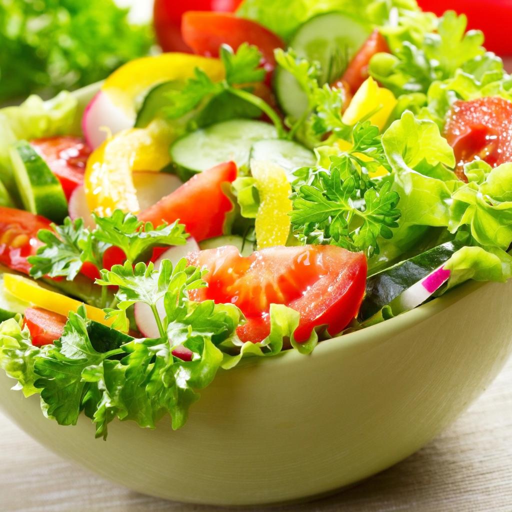 Wallpaper Fresh vegetable salad with greens on the table