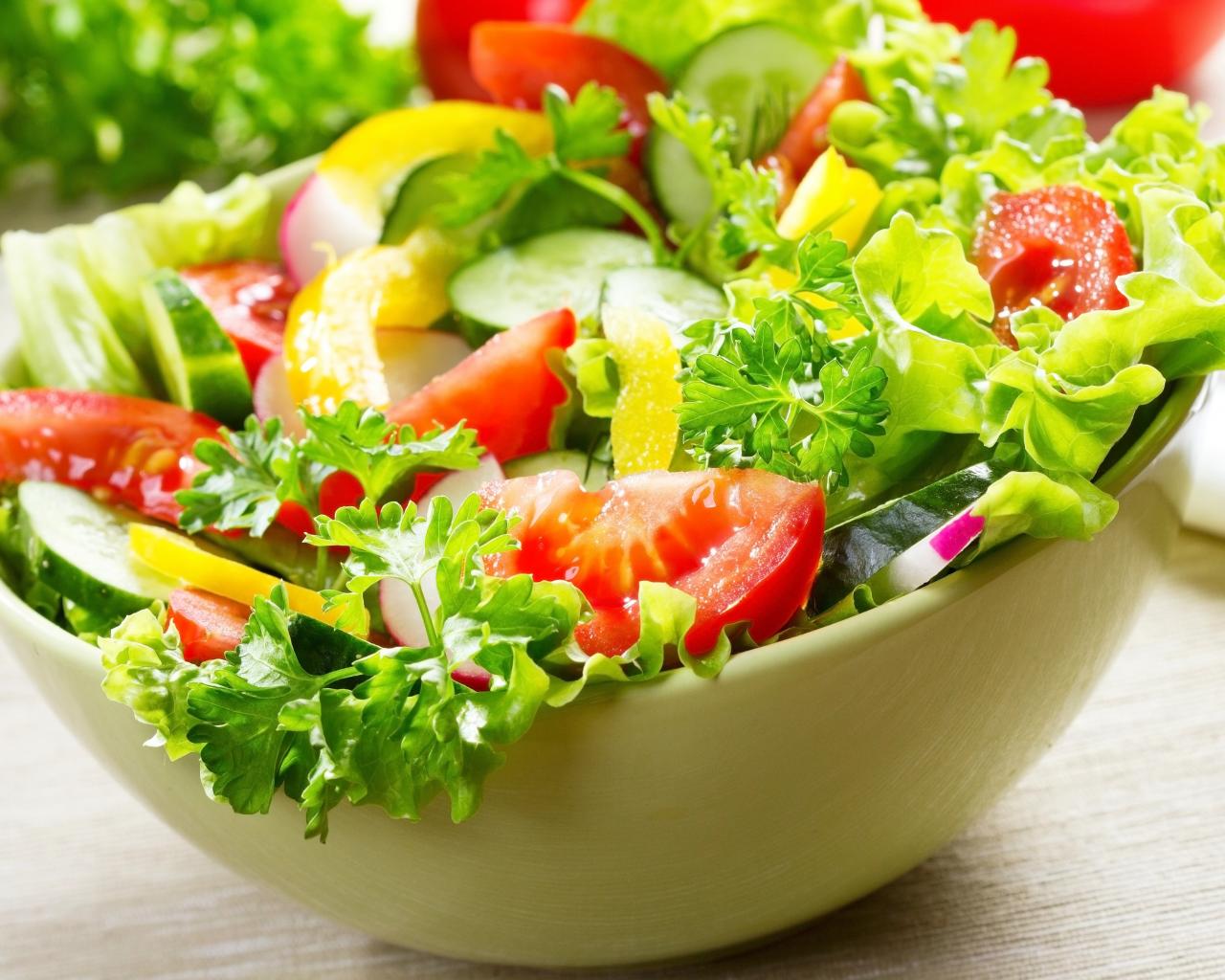 Wallpaper Fresh vegetable salad with greens on the table