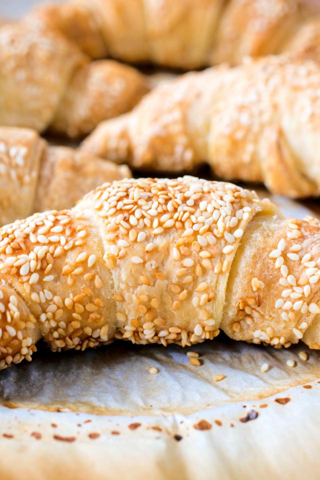 Wallpaper Aromatic fresh croissants with sesame seeds