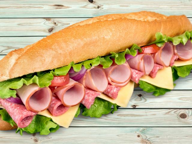 Wallpaper Large sandwich with sausage, cheese and lettuce