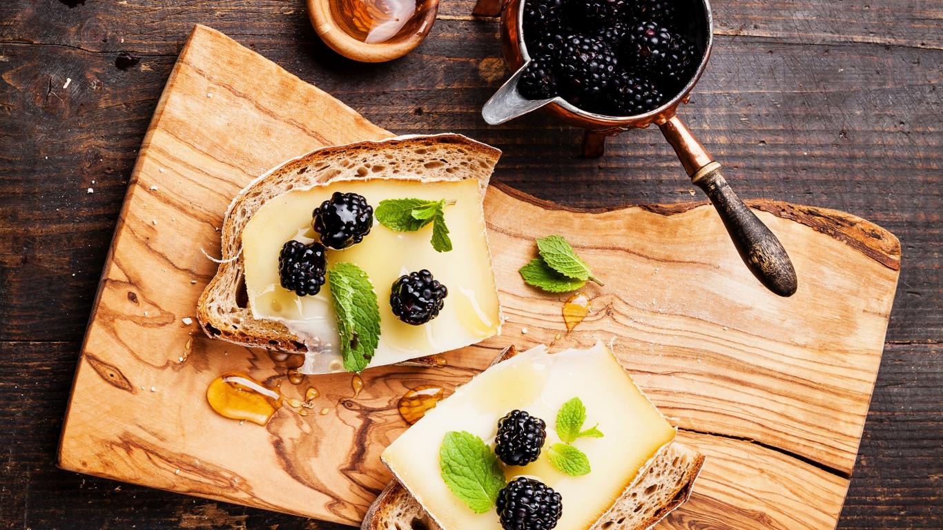 Wallpaper Sandwiches with cheese, honey and blueberries