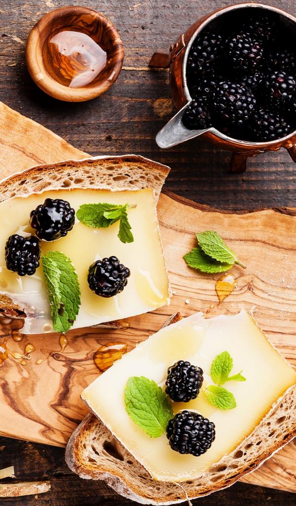 Wallpaper Sandwiches with cheese, honey and blueberries