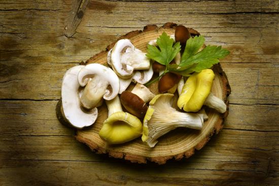 Wallpaper Mushrooms on a wooden cutting board
