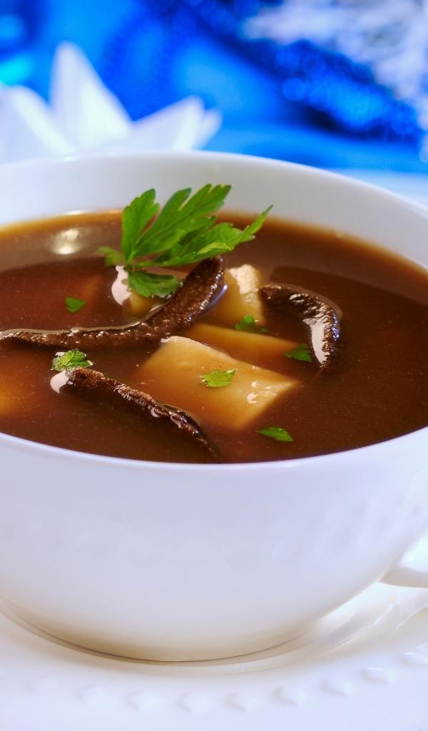 » Wallpaper Mushroom soup in a white plate