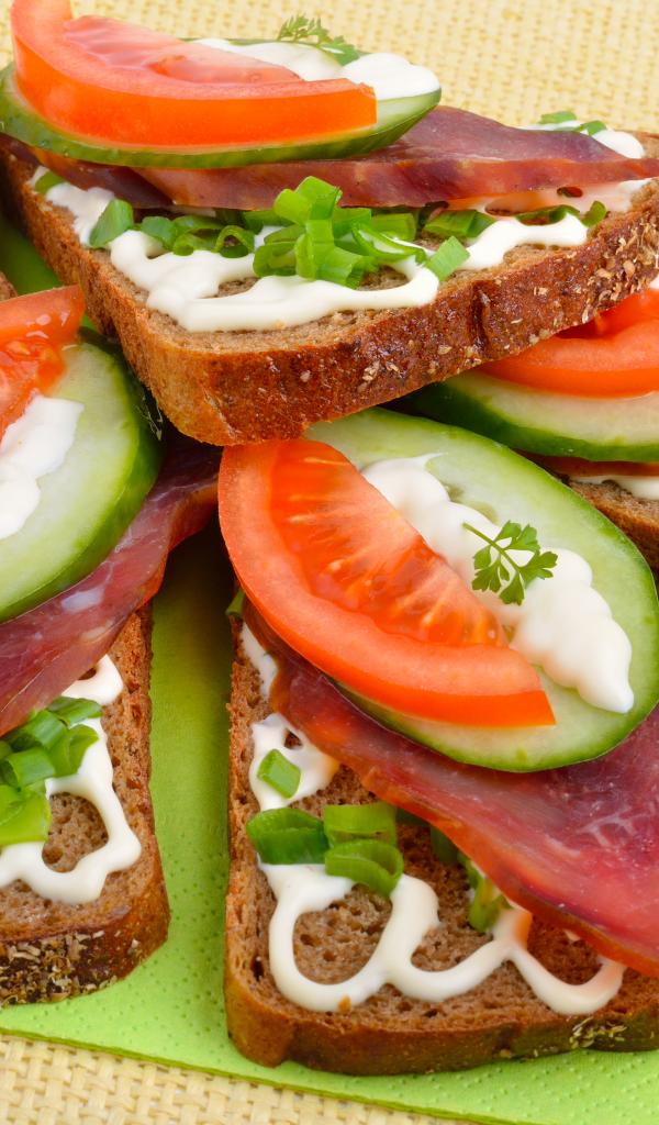 Wallpaper Appetizing sandwiches with sausage, tomatoes and cucumbers