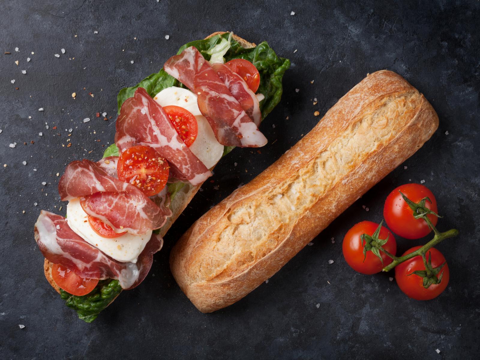 Wallpaper Sandwich with ham, tomato, egg and lettuce leaves