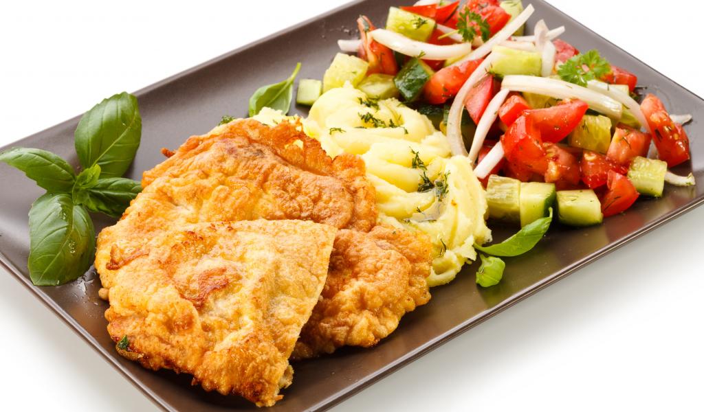 Wallpaper Chops with mashed potatoes and vegetable salad on a plate