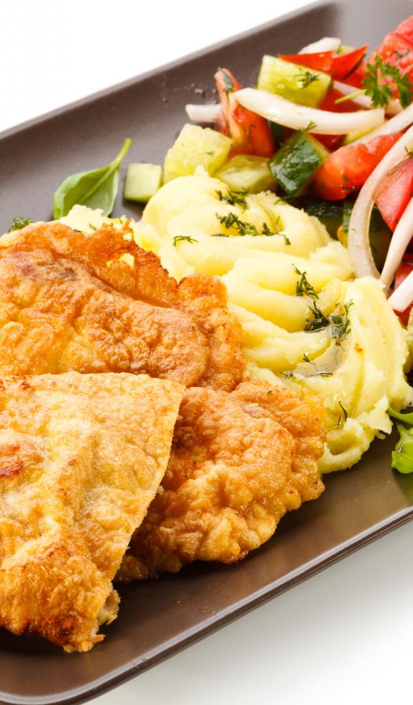 Wallpaper Chops with mashed potatoes and vegetable salad on a plate