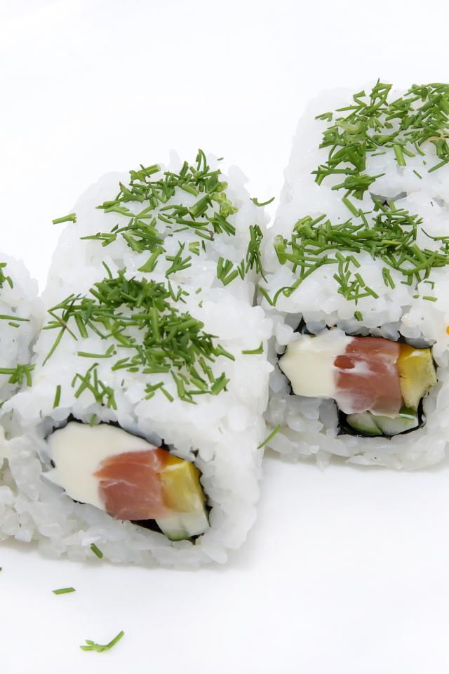 Wallpaper Rolls with rice and greens on a white background