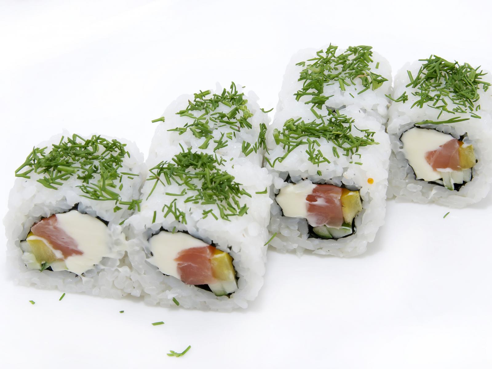 Wallpaper Rolls with rice and greens on a white background