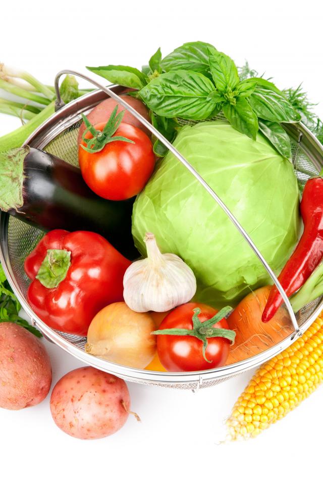 Wallpaper Basket of fresh vegetables and fruits on a white background