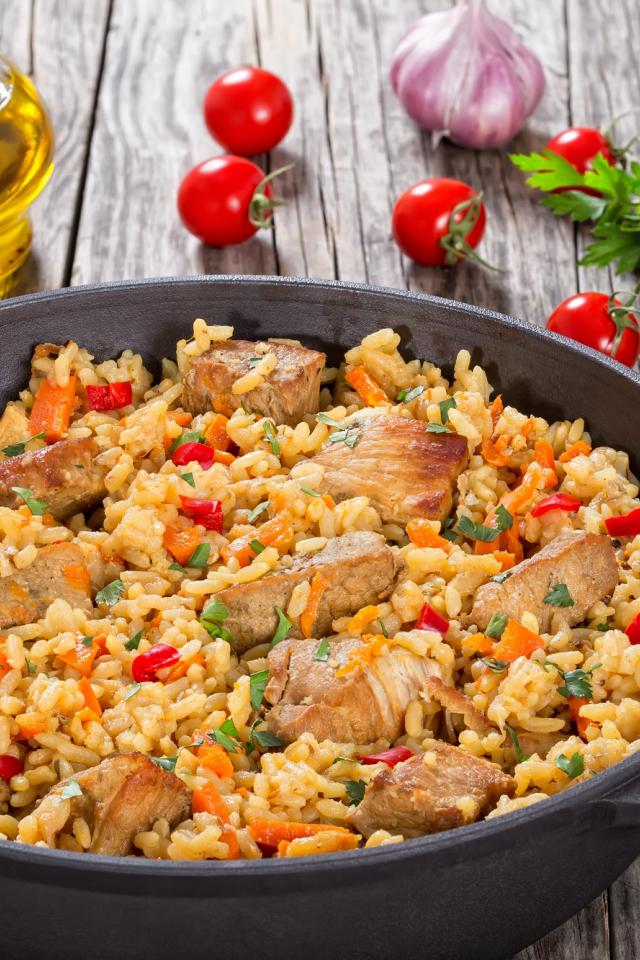 Wallpaper Pilaf with meat on a table with tomatoes and parsley