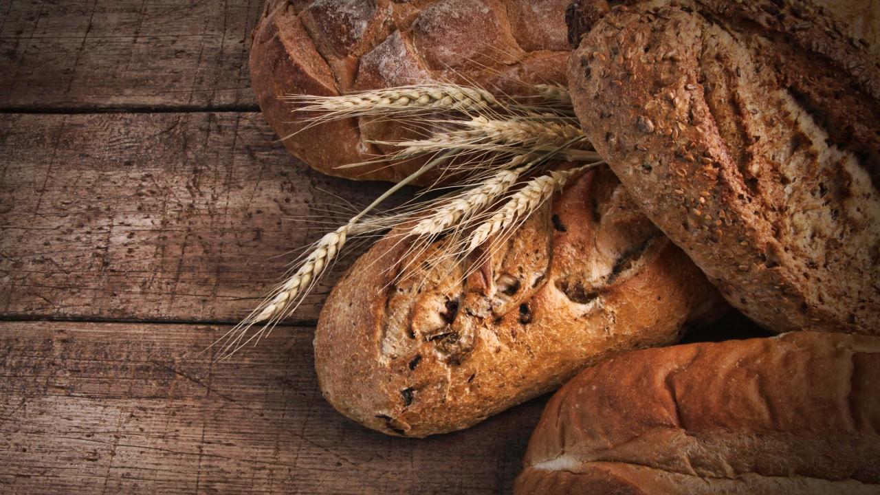 Wallpaper Fresh bread on a table with wheat ears