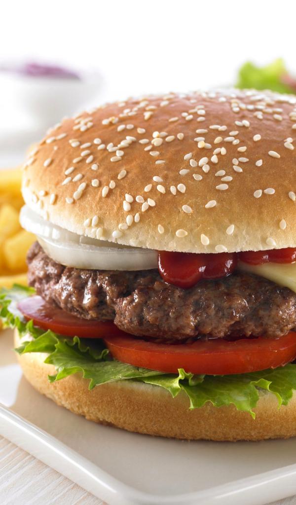 Wallpaper Appetizing big burger with french fries