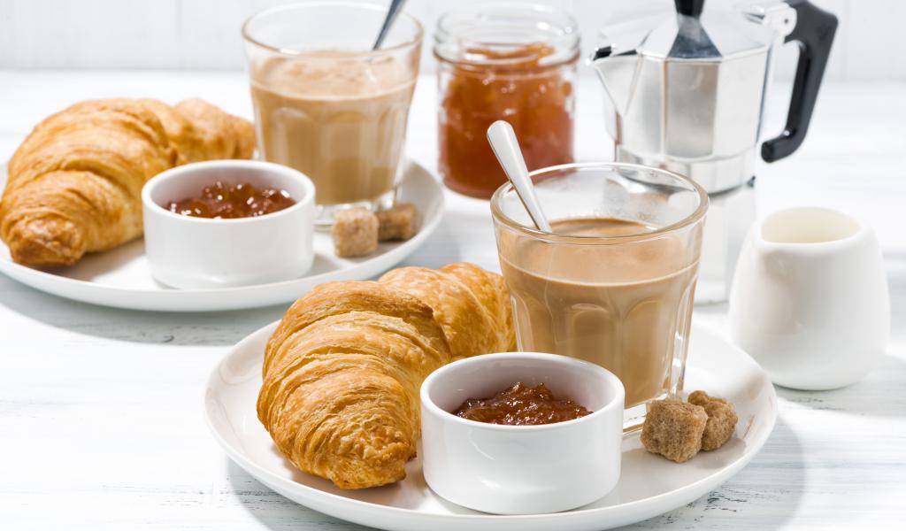 Wallpaper Cocoa with jam and croissants for breakfast