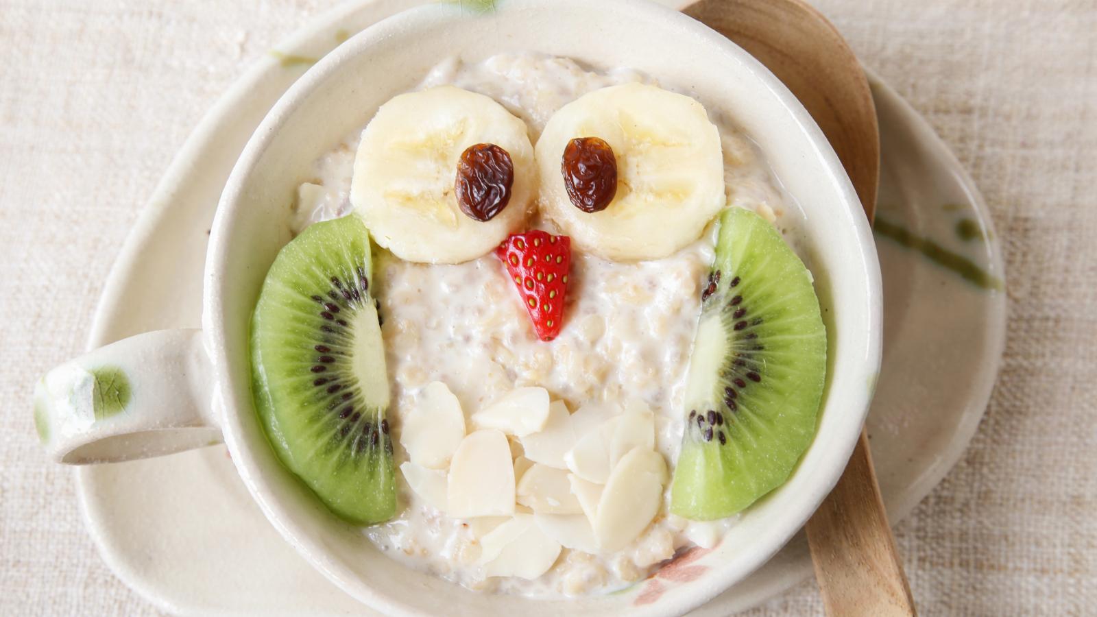 Wallpaper Creative decoration of a children`s breakfast in the form of an owl