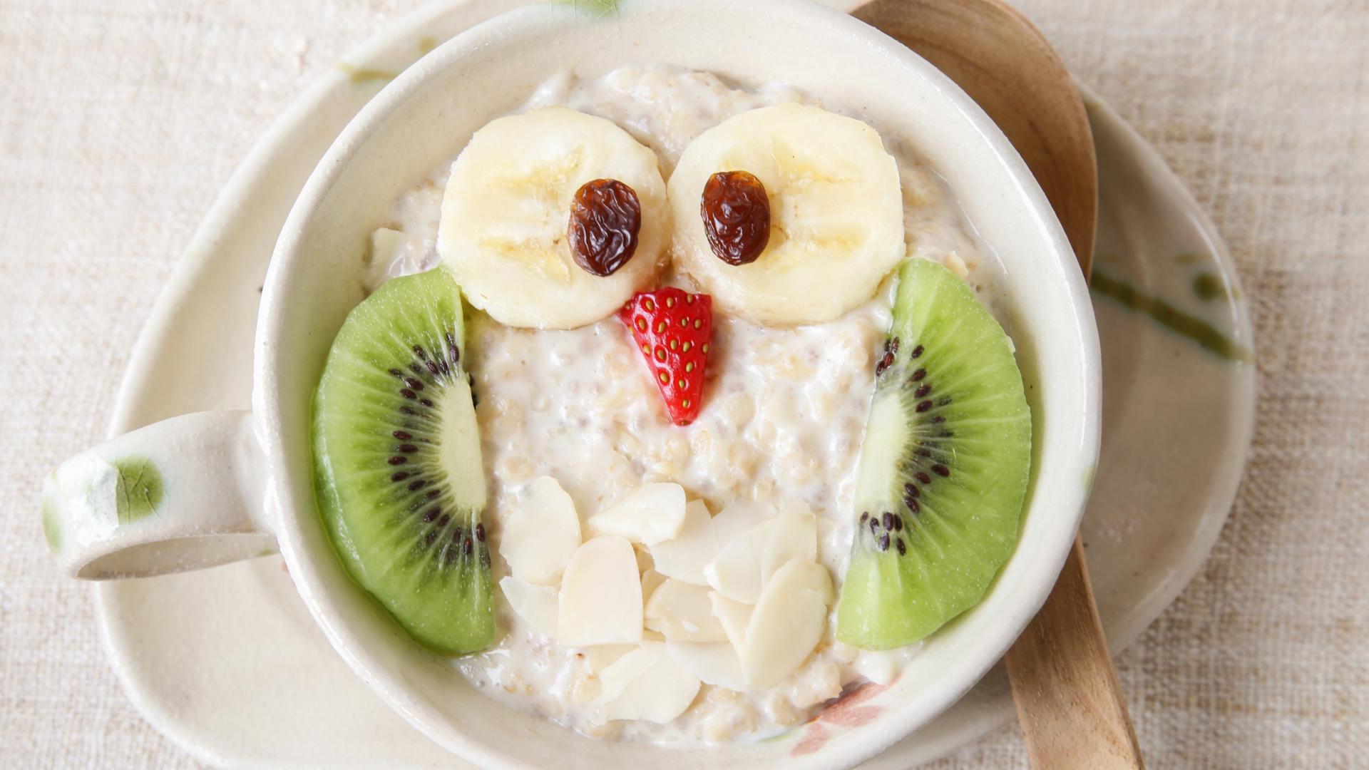 Wallpaper Creative decoration of a children`s breakfast in the form of an owl